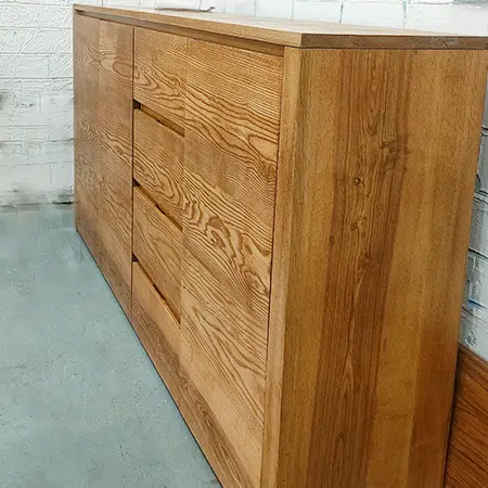 Le bahut en bois massif est un meuble à la fois élégant, pratique et robuste, conçu pour répondre aux besoins de rangement tout en apportant une touche chaleureuse et naturelle à votre intérieur. Fabriqué à partir de bois massif de haute qualité, ce bahut se distingue par sa solidité et sa durabilité exceptionnelles. Le bois utilisé est soigneusement sélectionné pour ses propriétés résistances, garantissant une longue durée de vie tout en préservant sa beauté et son aspect naturel. La texture riche et les veines uniques du bois ajoutent une dimension esthétique qui s’intègre parfaitement dans tous les types d’intérieurs, du plus traditionnel au plus moderne.