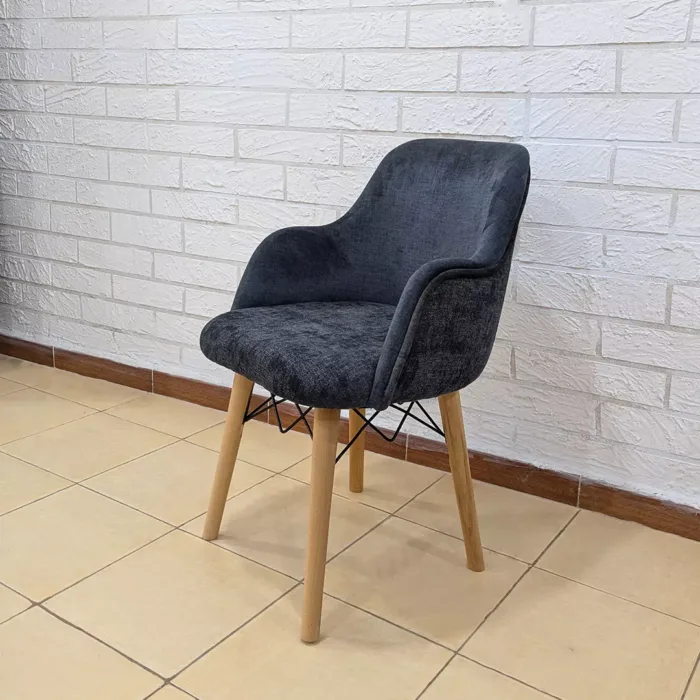 L’élément distinctif de cette chaise réside dans ses accoudoirs ergonomiques, qui apportent un soutien supplémentaire et permettent de profiter de moments de détente dans une position confortable. Ces accoudoirs, subtilement intégrés au design, offrent non seulement une meilleure ergonomie, mais ajoutent aussi une touche de raffinement et de sophistication au meuble. L’assise est généreusement rembourrée et recouverte d’un tissu luxueux, agréable au toucher et conçu pour résister à l’usure. Ce tissu est à la fois élégant et pratique, offrant un aspect soigné et une facilité d’entretien.